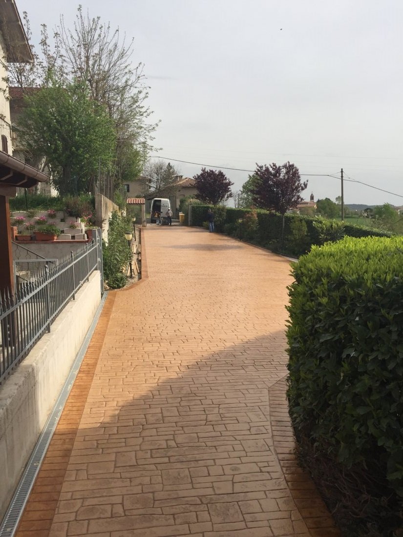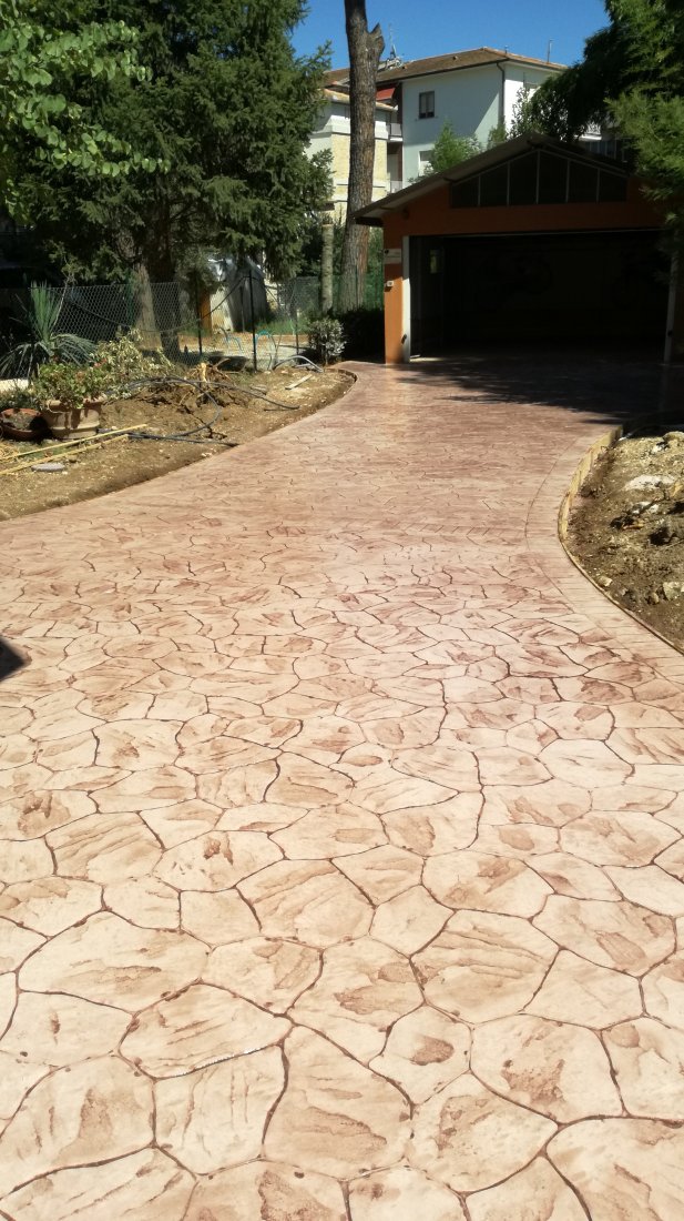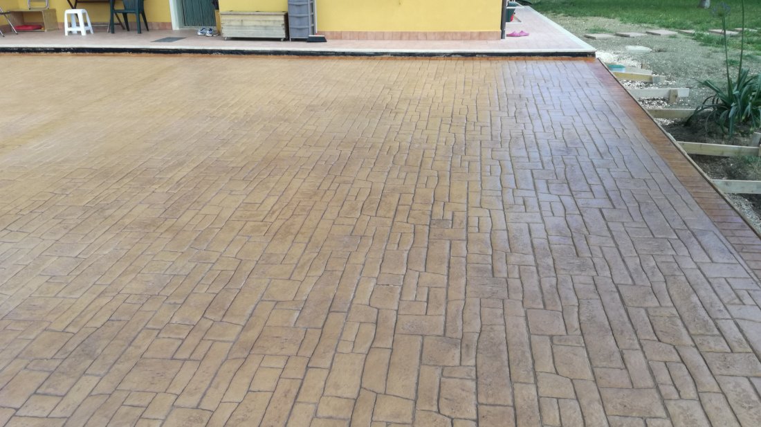 Ci sono situazioni in cui un pavimento sopporta un duro carico di lavoro, come le rampe d’accesso ai garage, ai parcheggi od altro. Questo, però, non è un buon motivo per rinunciare a dargli un aspetto molto più gradevole di una normale pavimentazione in calcestruzzo. Il pavimento, infatti, viene opportunamente trattato con speciali corazzanti prima dello stampaggio, con il risultato di realizzare la colorazione che preferisci e di raddoppiarne la normale resistenza alle abrasioni e all’usura, rispetto al normale calcestruzzo.