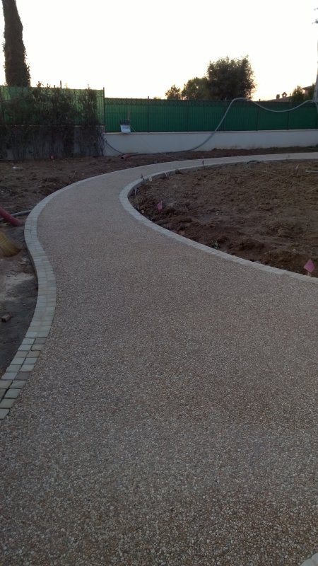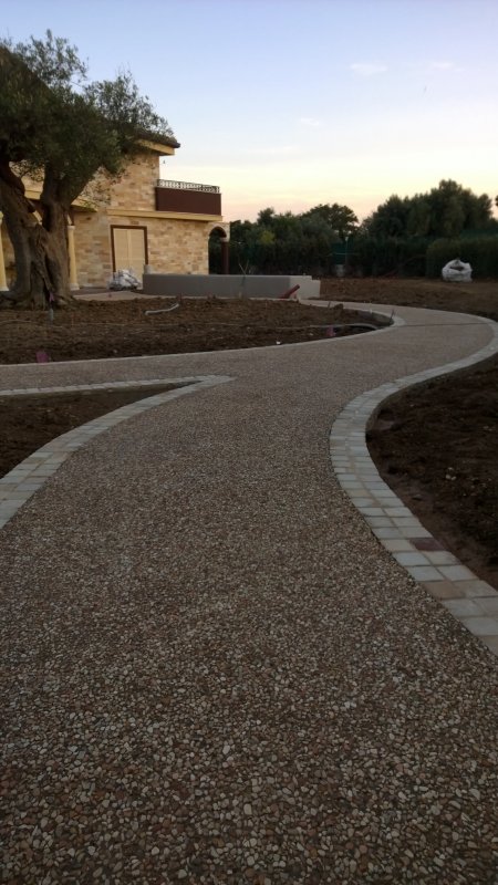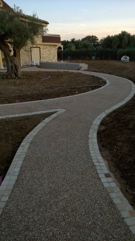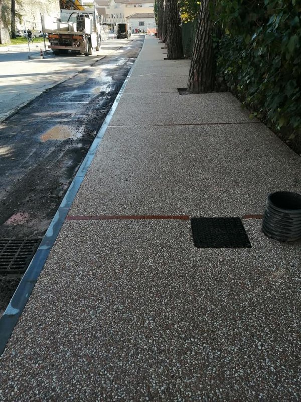 Realizzazione di marciapiede comunale presso Gubbio (PG) con calcestruzzo lavato, inerte locale 7-12mm e cemento di colo